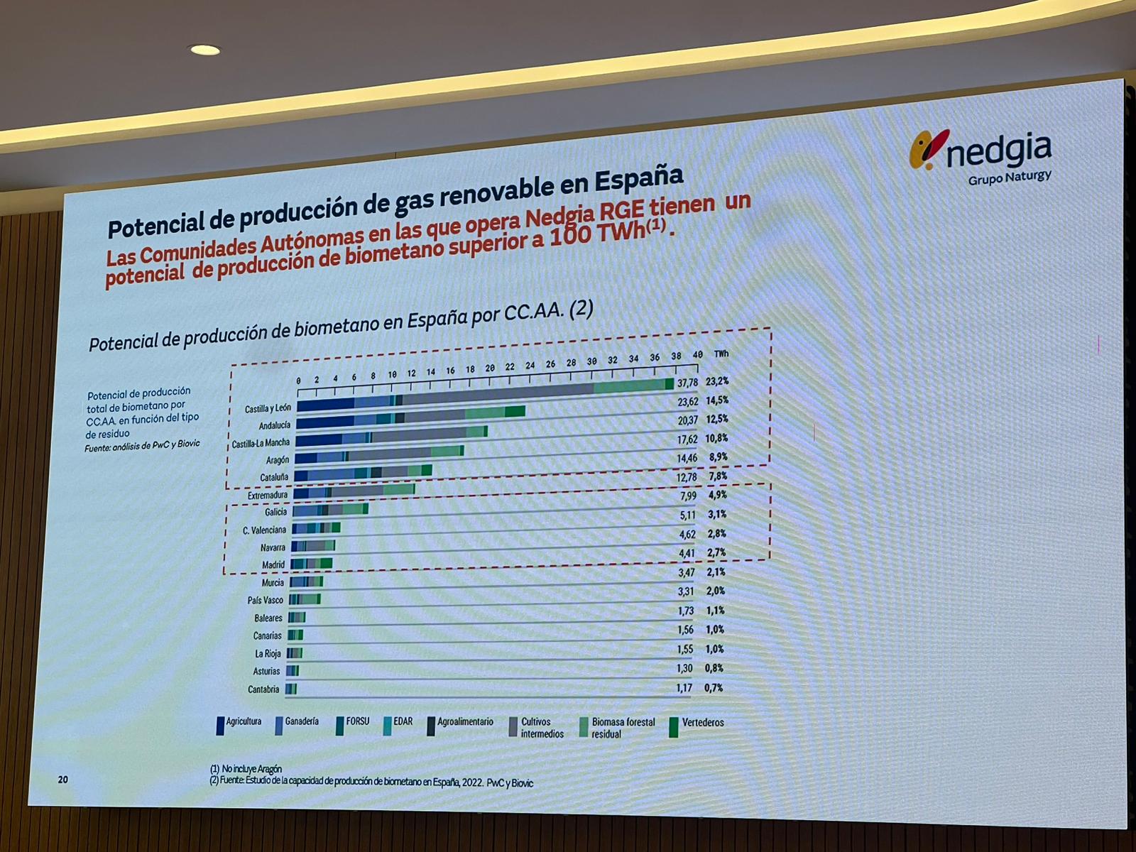 También se resaltó el gran potencial de España en la producción de biometano, siendo Castilla y León la región con mayor capacidad. Actualmente existen 25 plantas activas y NEDGIA cuenta con 99 contratos firmados, 15 de ellos ya conectados a la red, con una producción total de 5.880 GWh.